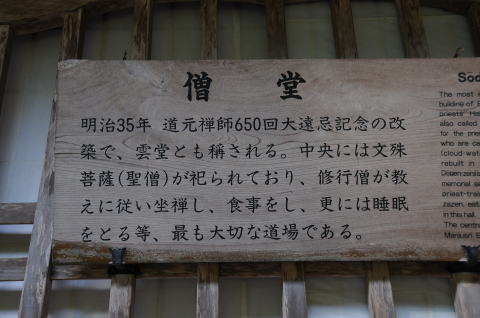 僧堂:1902年(明治35年)改築。座禅、食事、睡眠の行を行う根本道場。