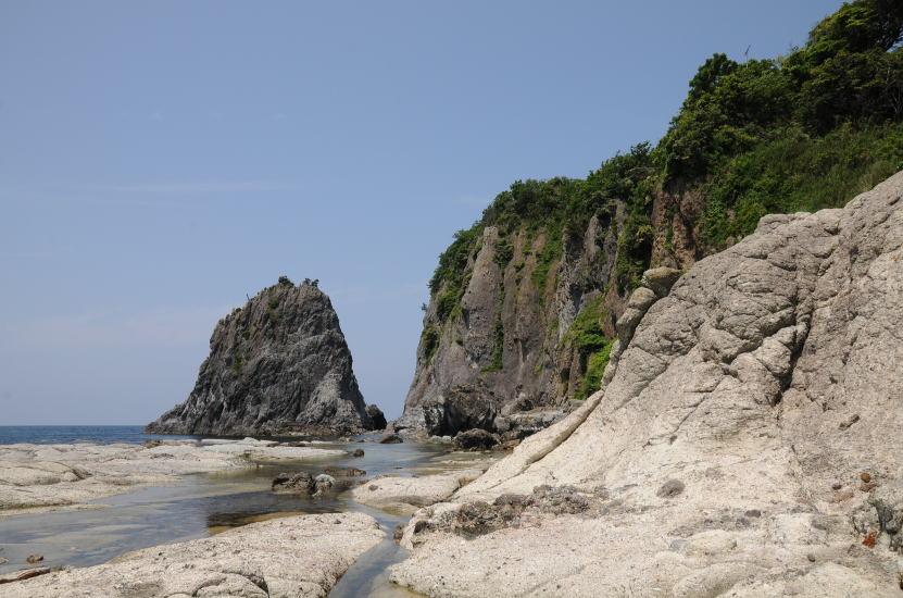 千畳敷(手前)-但馬赤壁の右端(背後)