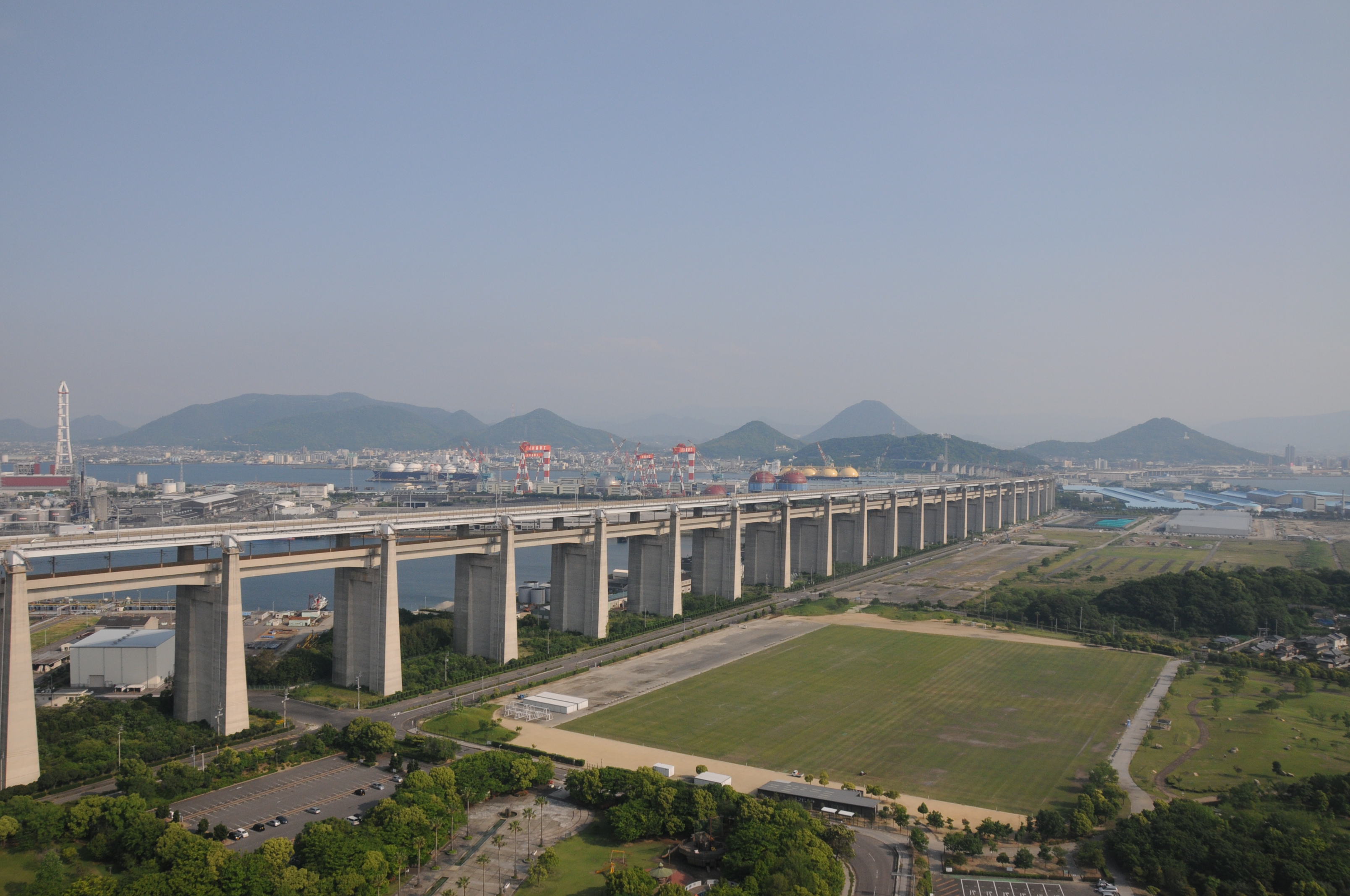 瀬戸大橋記念館展望台から望む瀬戸中央道と水の回廊