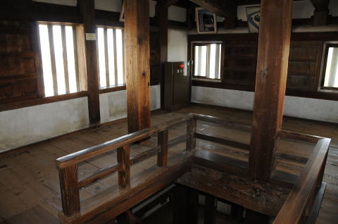 城内から望む大手二の門:1670年(寛文10年)頃の建築。1957年(昭和32年)国の重要文化財に指定