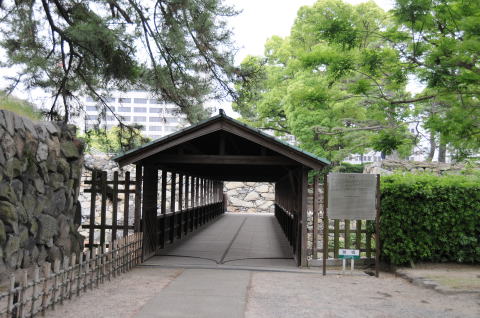鞘橋(サヤバシ):二の丸から本丸へ続く唯一の橋。1884年(明治17年)に再建。『らんかん橋』と呼ばれ、1640年代の絵図には、屋根のない橋として描かれていた。