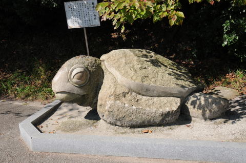 亀老山の由来:約1300年前、光輝く黄金色の観音像を背負った大亀を、風来僧が洞窟で見つけた。その観音像を山に祀って以後、亀老山と名付けた。