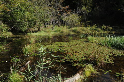 遊歩道から望む湿原の風景(ヒツジグサ)