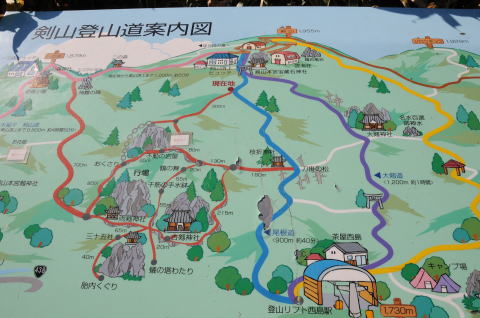 剣山登山道案内図 行場-尾根道 合流点