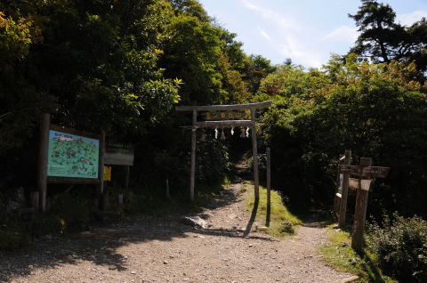 大剱道コースの下山道に架かる大剱神社の鳥居
