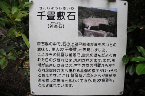千畳敷石(神楽石):平面積が一番広い岩、降神時に巫女が奉納神楽を舞った場所