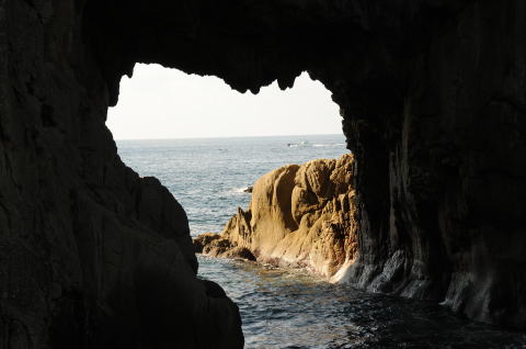 高さ16m、幅17m、花崗岩の洞門では日本一といわれている。太平洋の荒波が創造した典型的な海蝕洞門。(案内板より抜粋)