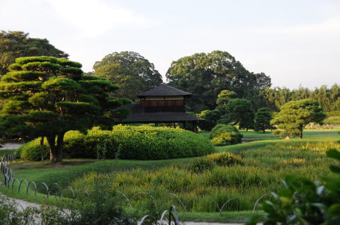 唯心山から望む庭園(沢の池の左手(正門)方面)