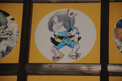 圓流院:天井に『ゲゲゲの鬼太郎』の生みの親『水木しげる』先生作の妖怪108枚が描かれている