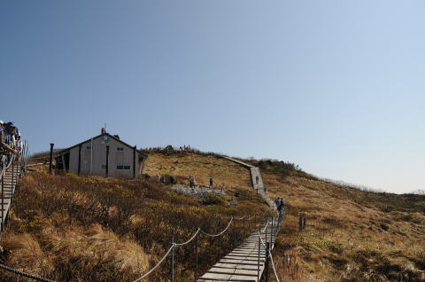 九合目-頂上 付近の風景(登山道と頂上避難小屋)