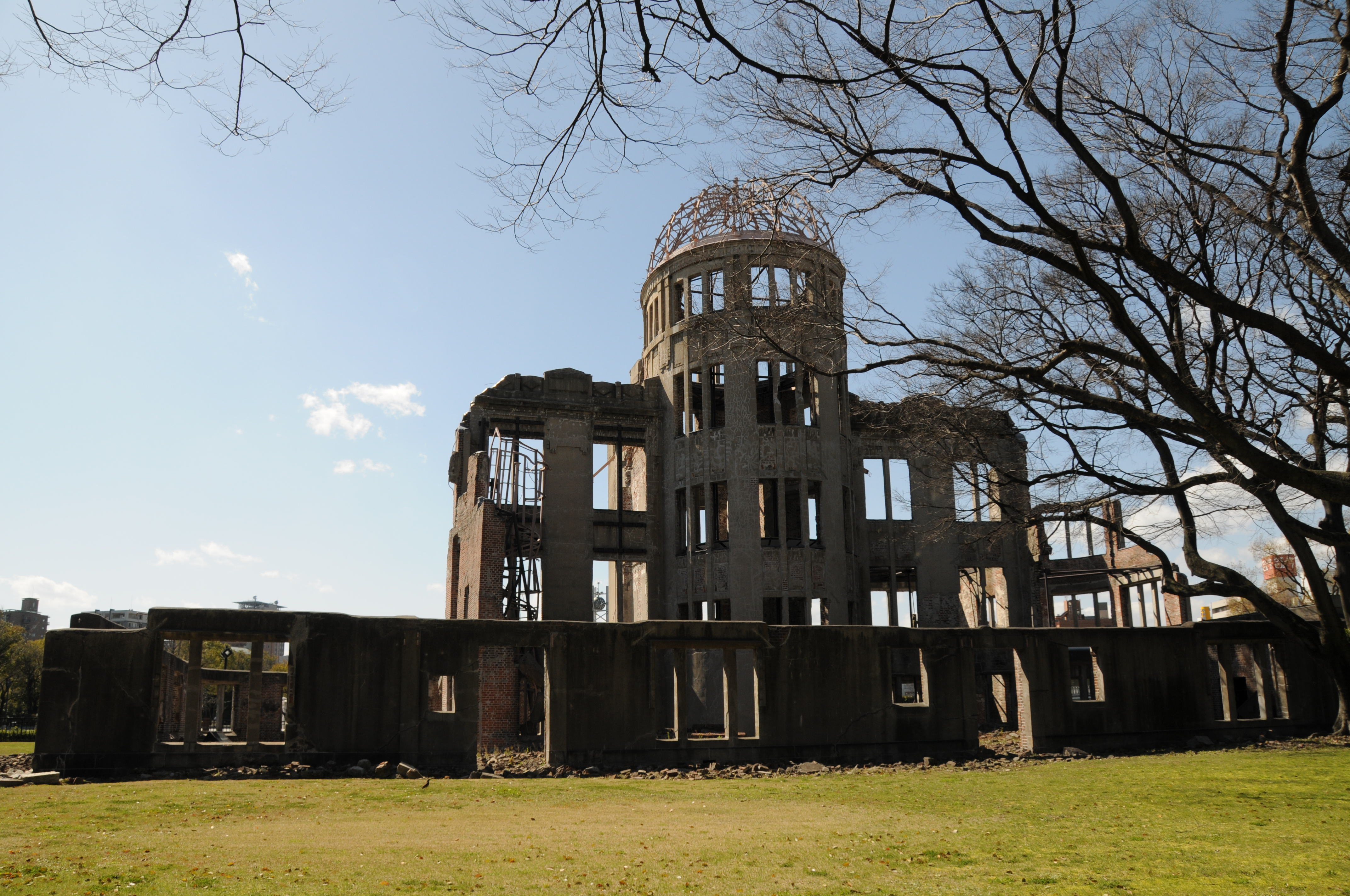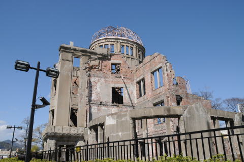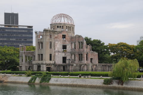 世界遺産原爆ドーム:人類史上最初の原子爆弾による被爆の惨禍を伝える歴史の証人として、また、核兵器廃絶の恒久平和を求める誓いのシンボルとして『世界の文化遺↓