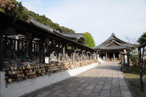 仁王門を抜け石段を上がると左に石仏と十六羅漢
