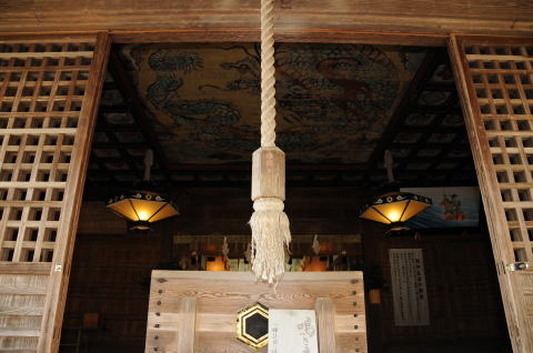 拝殿内部(正面真上の鳴き龍)手をたたくと・・・