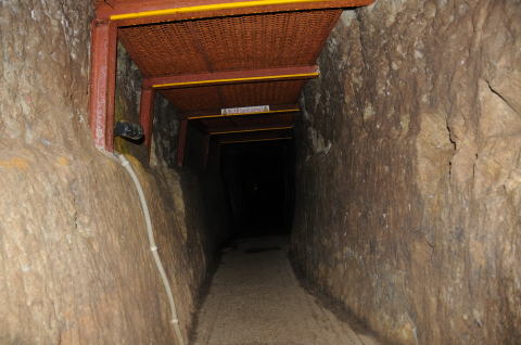 入口から約160m地点。ここから奥(下の写真中央)は、高さ約2m,幅約90cmで、江戸時代に掘られたもの。