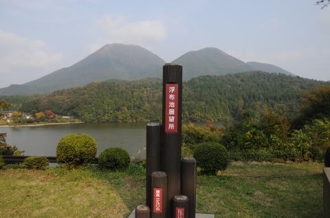 浮布池展望台から望む浮布池と三瓶山(男・子)