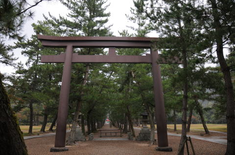 勢溜の大鳥居から望む神門通りと第一の鳥居