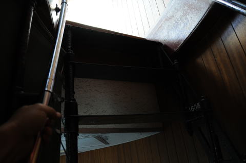 灯台内部(入口付近、奥に灯頂へのらせん階段)
