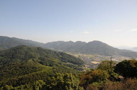 神社の境内から望む大島大橋。 大多満根神社:イザナギとイザナミの二柱の神が島を産んだ