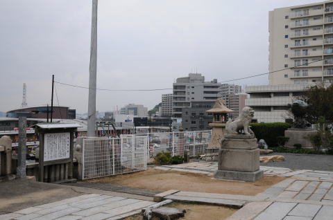 社殿付近から望む唐戸港