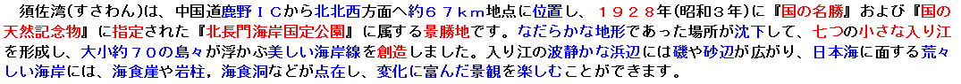 須佐湾:1955年(昭和30年)北長門海岸国定公園に指定