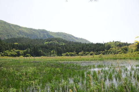油井の池はどうやってできたか?:この丸い池崖に囲まれています。約300万年前に大規模な地滑りによって窪みができ、そこに水が溜まってできた直径250mの池です。