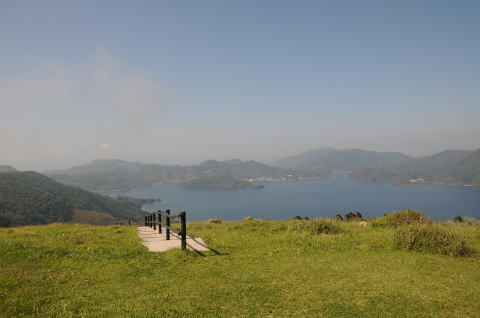 丘の上の鬼舞展望所から望む内海を囲む外輪山,焼火山の風景