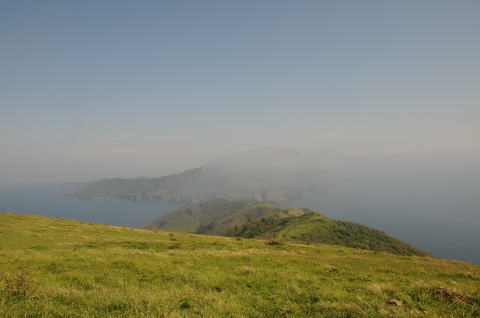 最先端への牧草地から望む赤灘の瀬戸と知夫里島(赤ハゲ山)