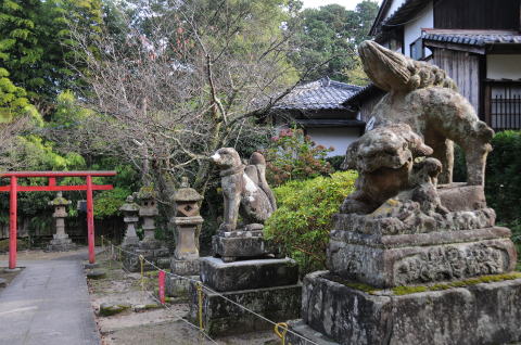 境内の様子:表情豊かな『きつね様』が鎮座する