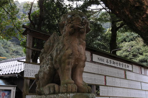 男女岩(めおといわ):美保神社から県道2号線を西へ約2.5km地点に位置し、海に浮かぶ『男性』とポッカリと口を開ける『女性』の岩。