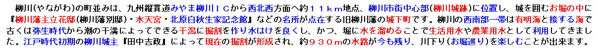 江戸時代初期に作られた柳川の町の中を流れる約930mの水路。