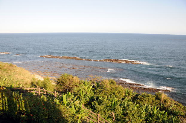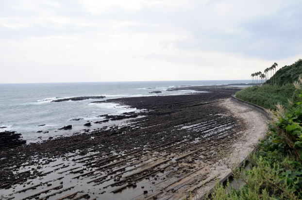 鬼の洗濯板(岩)への海岸へ降りる歩道から望む
