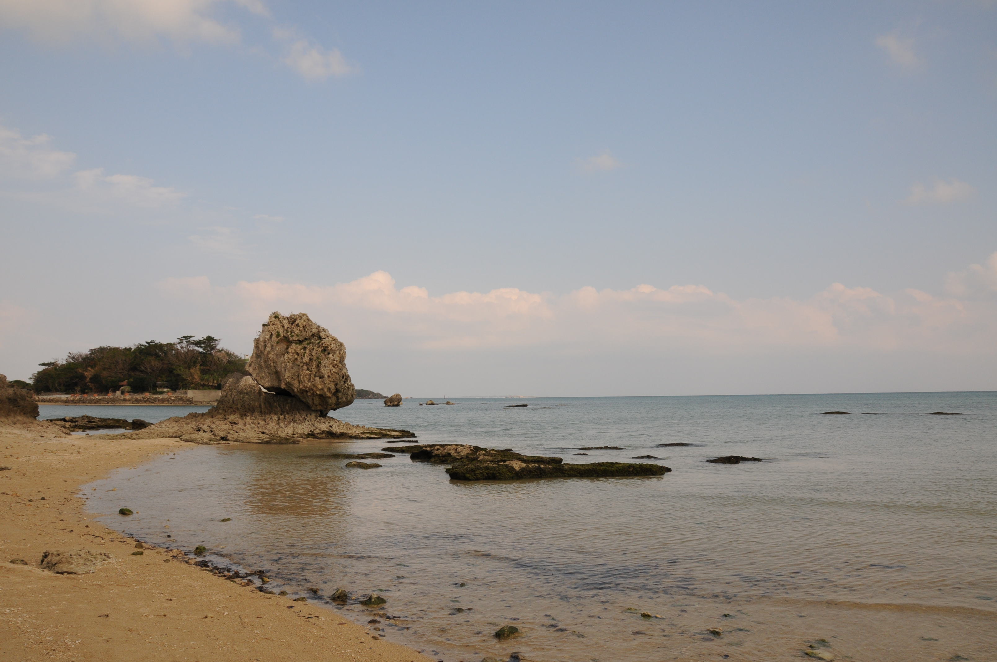 およぶ長い砂浜を巨大な石灰岩ひとつで、新原と百名ビーチに分けています。新原ビーチはグラスボートなどが楽しめる躍動した海岸
