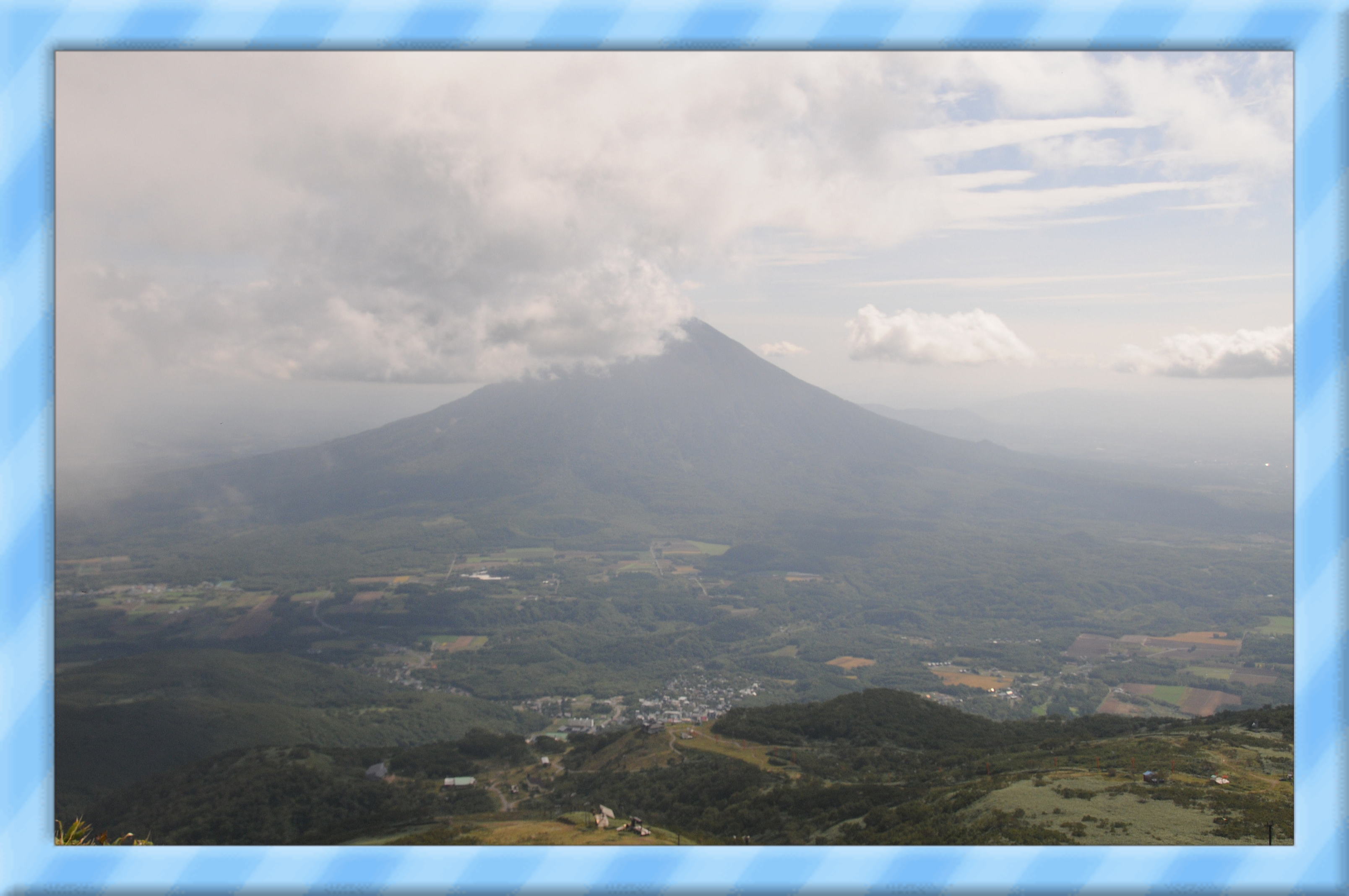 この日のニセコアンヌプリの天気は、晴れ時々曇りで山頂付近は霧に覆われていました。