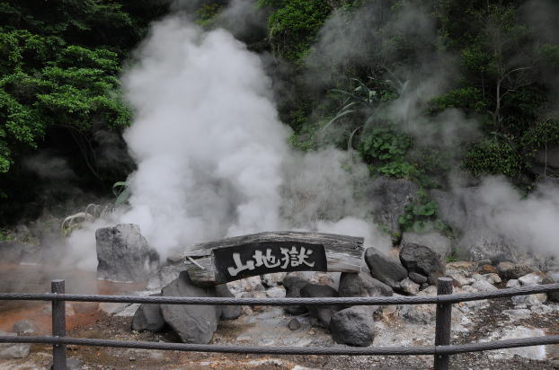 山地獄:山のいたるところから噴気が上がっているため山地獄と呼ばれている。
